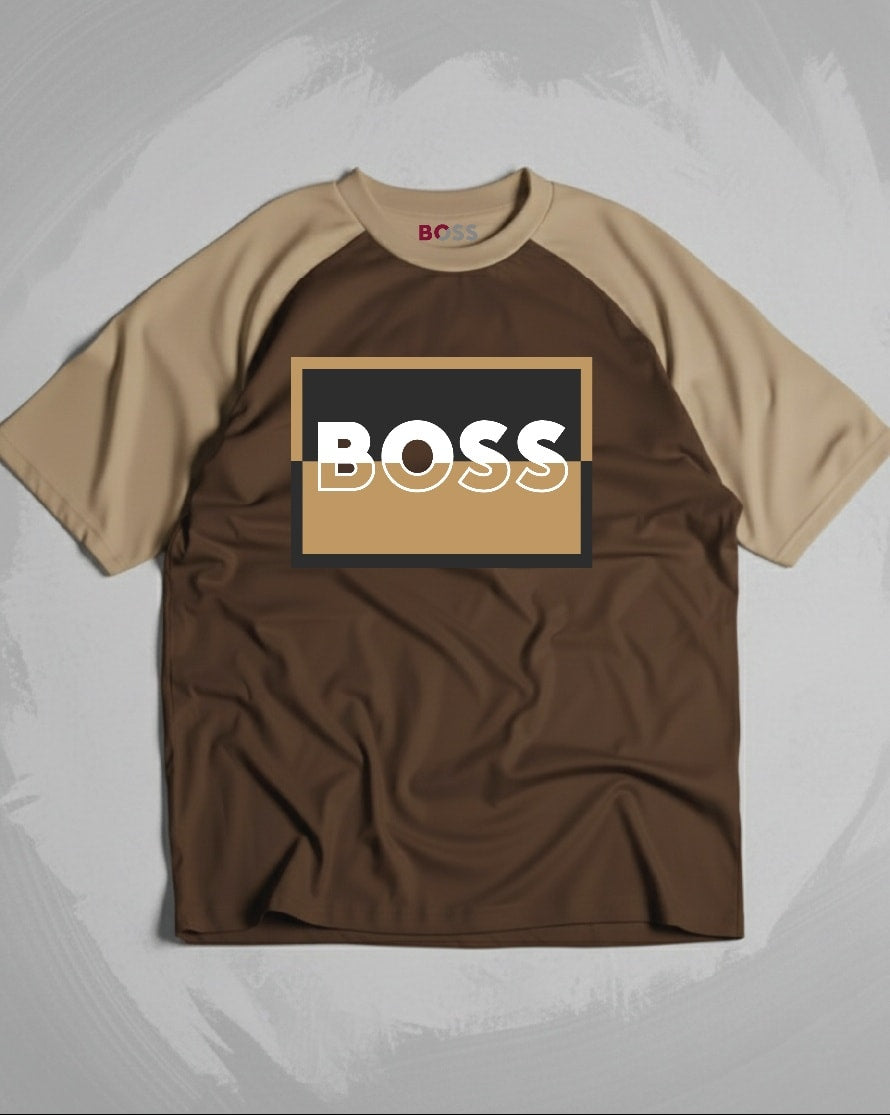 Hugo box logo Drop Shoulder Raglan T shirt Coffee/Beige