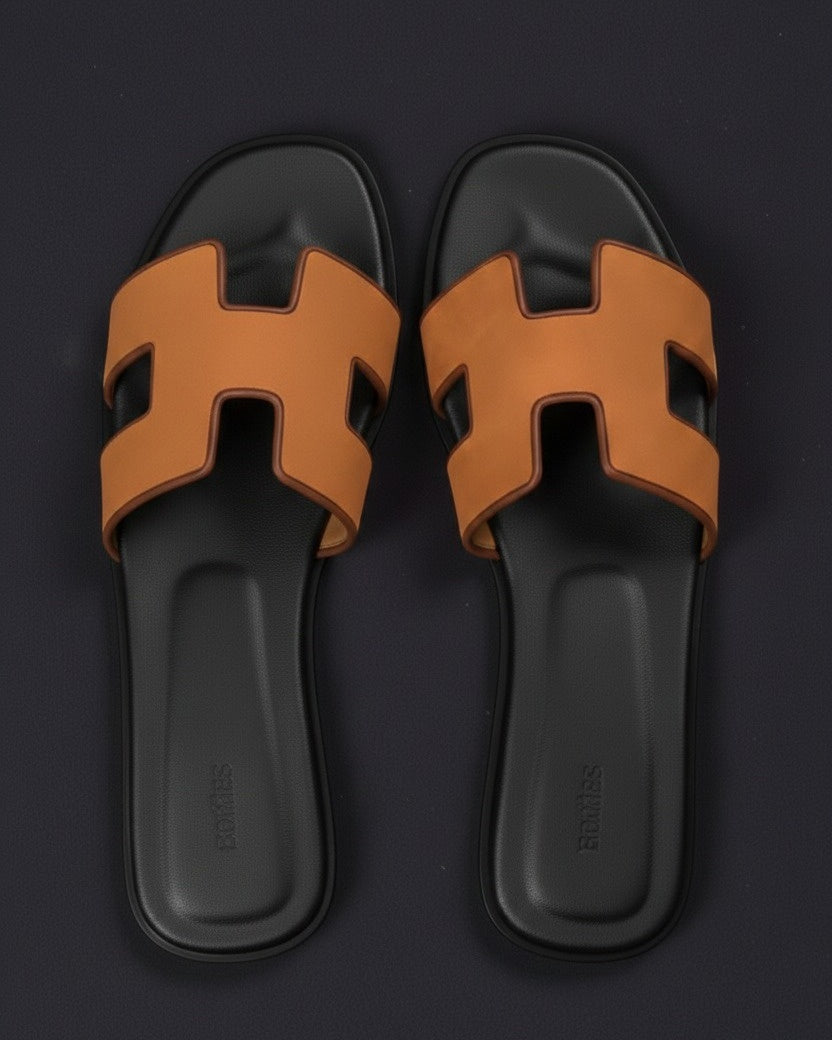 Genuine Leather H Cut-out Women Oran Sandal Black Orange Nuback