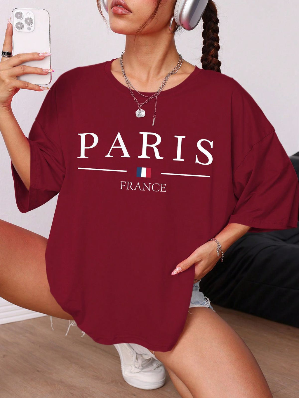 H&M Oversized T-Shirt Maroon